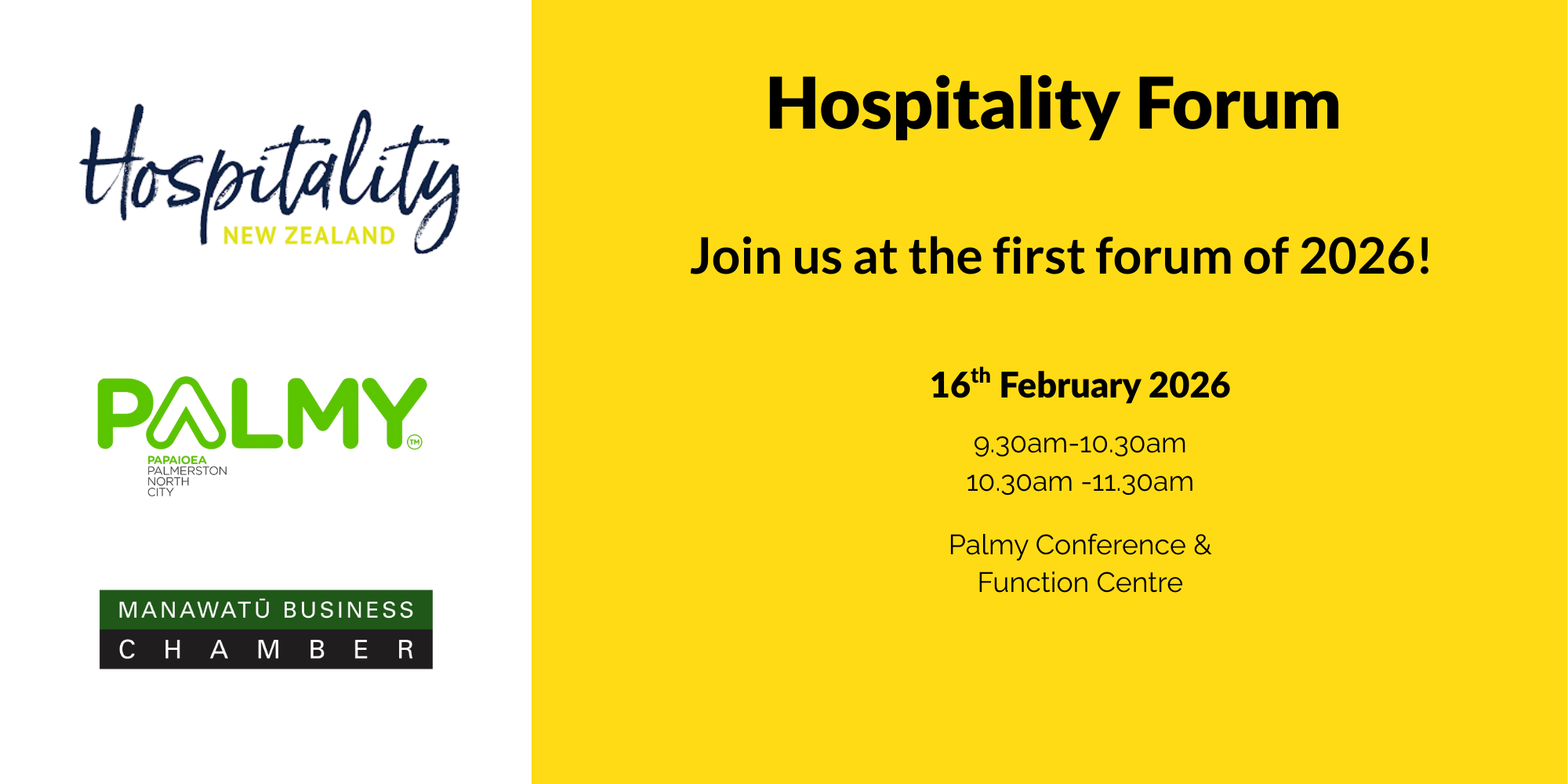 Discover how we can support you and your business, with insights from guest speakers including Palmerston North City Council (CEO Waid Crockett), Hospitality New Zealand, the Manawatū Business Chamber, and Police and Health representatives.